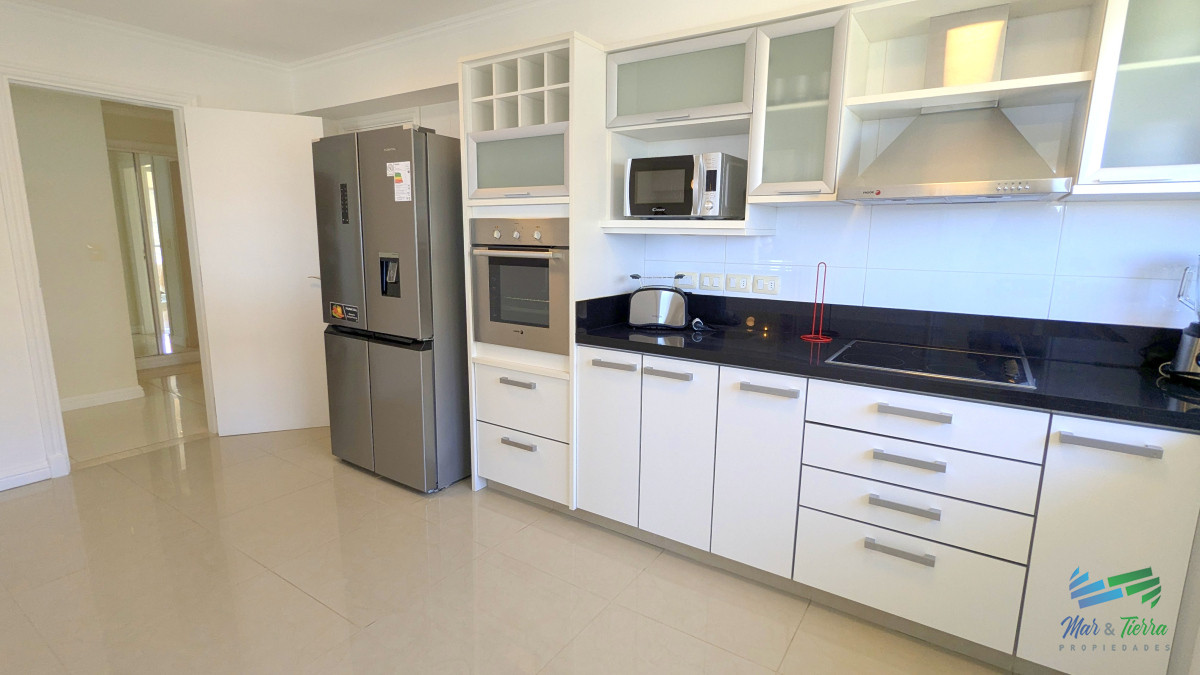 Posee 4 habitaciones, 5 baños, cocina semi integrada, un iluminado living comedor con vista al mar.