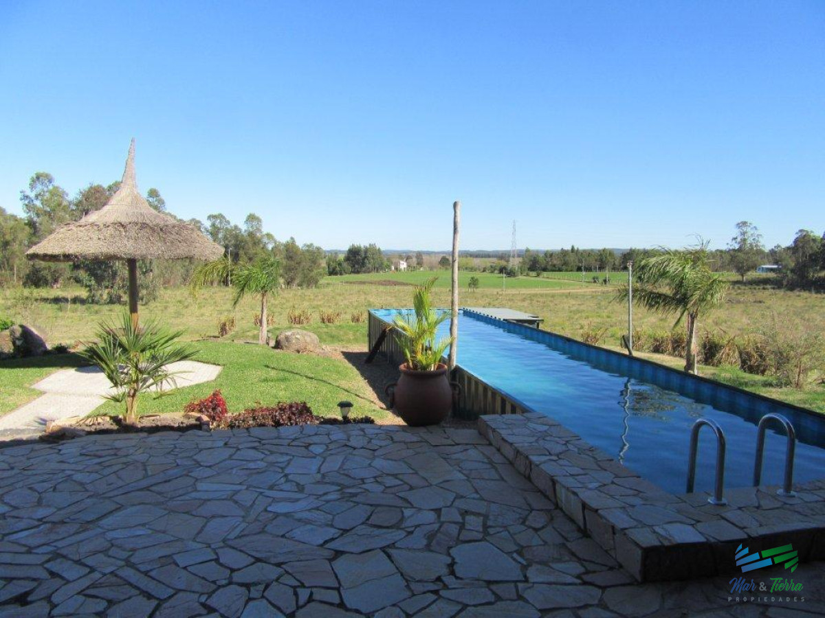 7 Has con casa a 1 hora de Mdeo y Punta. Casa de 140 mts 2 dormitorios y 2 baños. Galpón y piscina hechos con contenedores marítimos también. Huerta y monte. Muy buena ubicación. Consultenos tenemos mas chacras en la zona